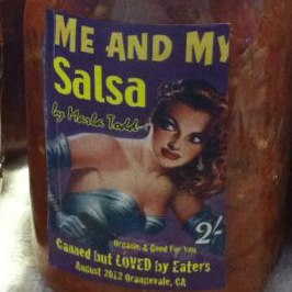One does not live on blood alone…not even a modern Vampire. There are a lot of foods we can’t eat, but luckily for us SALSA isn’t one of them. We love salsa at Vampire Maman’s house and our favorite comes from our friend Marla. She has been making salsa for over 20 years. Each batch is different depending on what is in the garden or at the farmer’s market any given week of the summer. She usually puts up 2-6 batches a summer. There are usually 24 jars to a batch, usually 2-3 different flavors – chili lemon, hot, mild chili, cowboy (with black beans and corn).