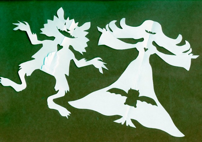 When I was a small girl my mother showed me how to cut simple paper dolls with paper. Since then I’ve been cutting free form paper dolls – just for fun.