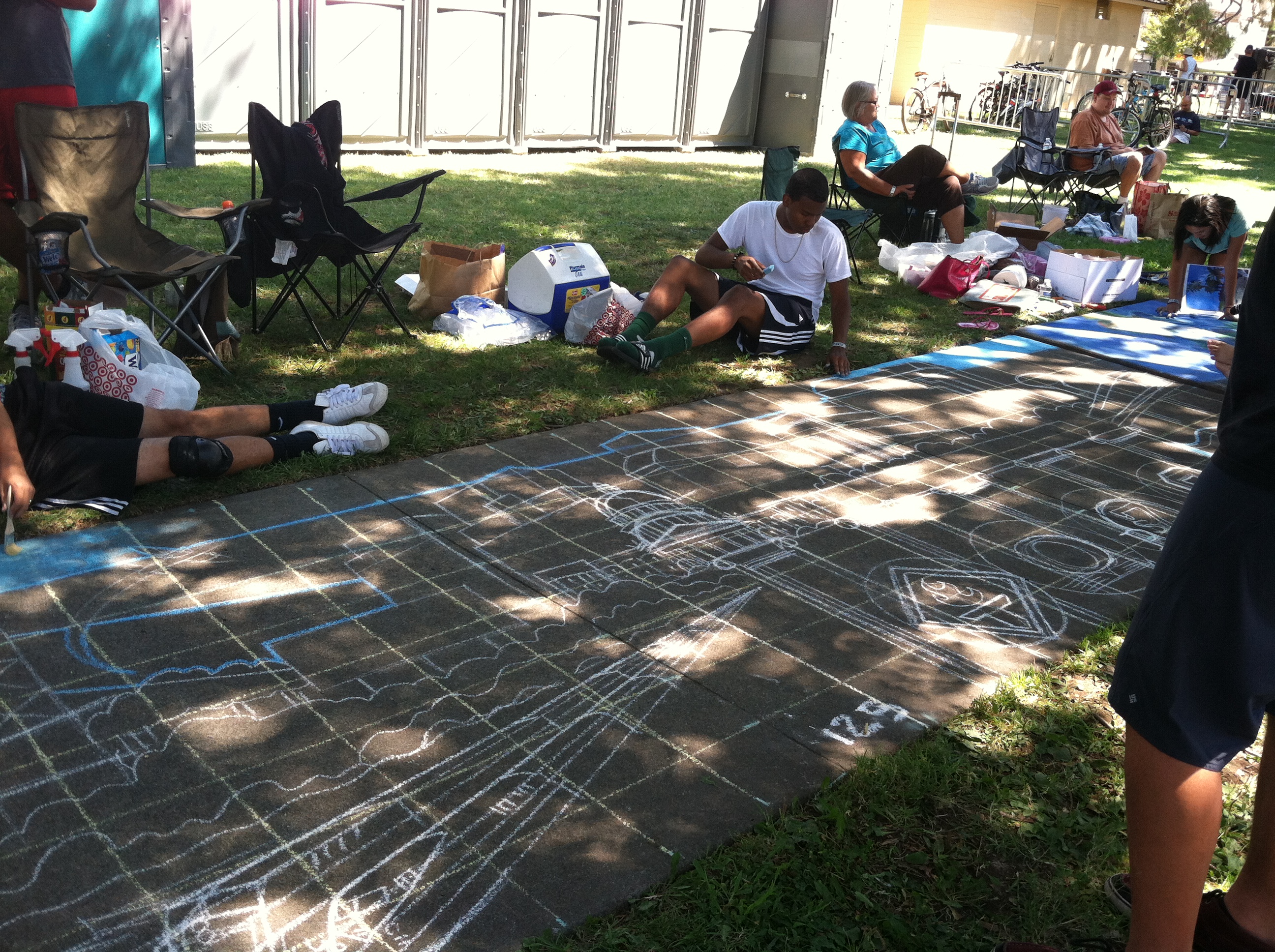 The event is unique in the fact that people gather for FUN and in the blazing end of August heat make the most unique and fleeting works of art – chalk on the sidewalk around the park.