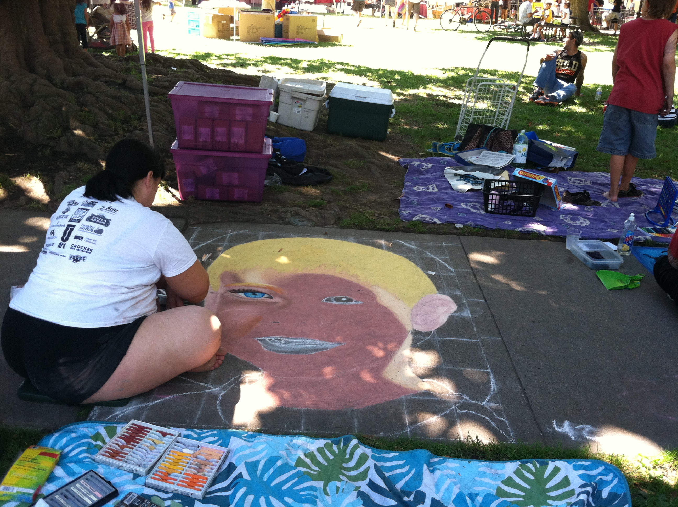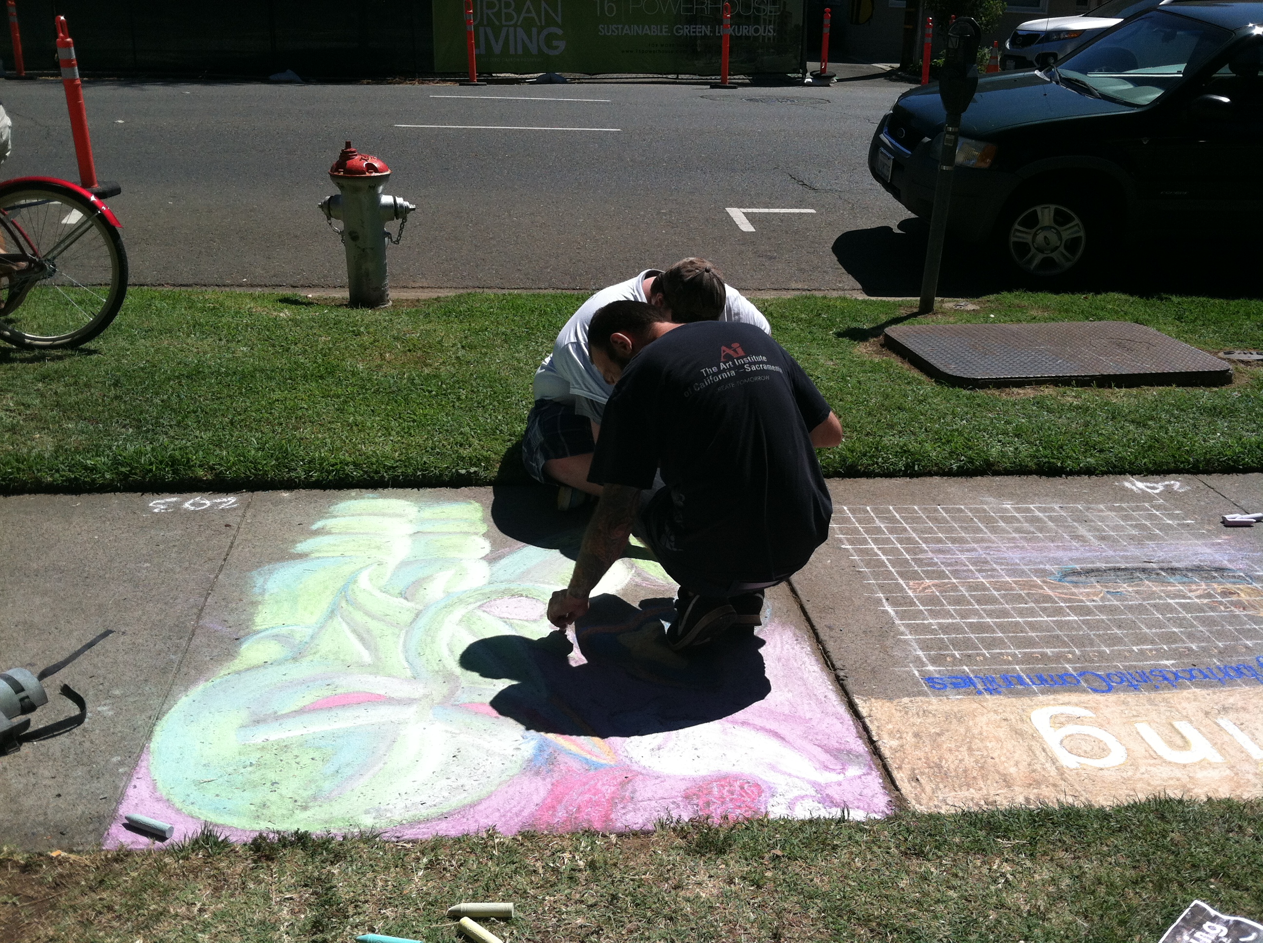 Calk it Up is a great organization that supports artists, especially young artists in the Sacramento area. Anyone can buy a square of sidewalk and create beautiful works of art – just for fun. For more information go to: Chalk it UpΒ http://www.chalkitup.org/