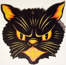 halloween cat 1A large wreath on the front door was made of faded and cracked plastic flowers. You know, those plastic flowers that were sold in the Five and Dime stores in the 1960’s. Faded ribbons and bows hung in odd gray pastel tones.