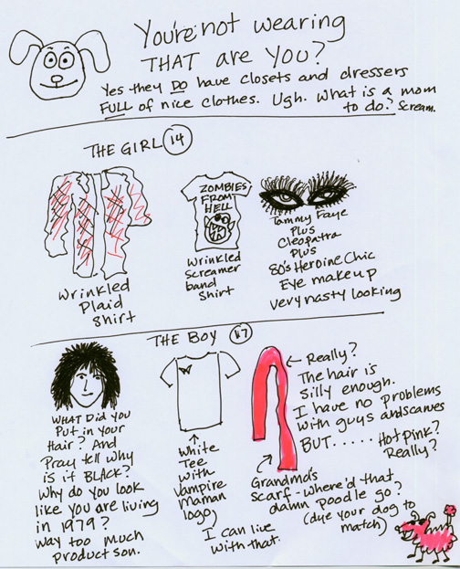 This morning I looked at my teens and wondered “what the Hell were they thinking?” I’ve prided myself in having well dressed presentable children. They have closets and drawers and floors full of nice fashionable clothing. Sometimes they get creative in look trendy and fantastic. But this morning they absolutely floored me. I wanted to say “Who are you and what did you do with my kids?” I give choices and let them dress how they want but some days… really kids? Really?