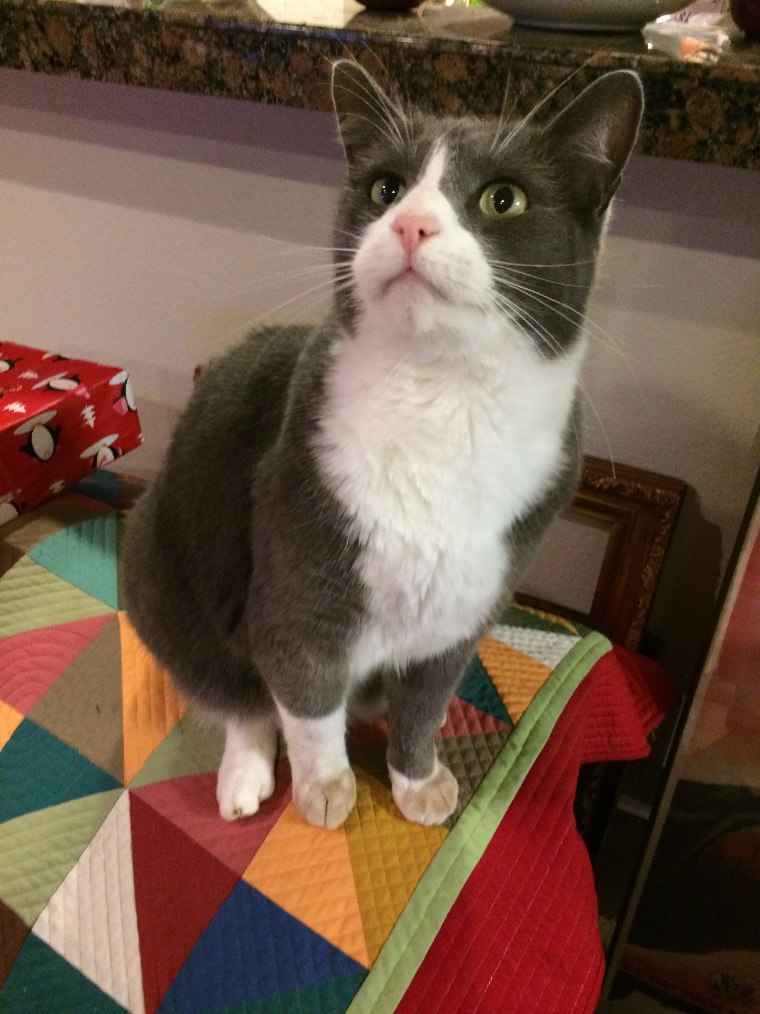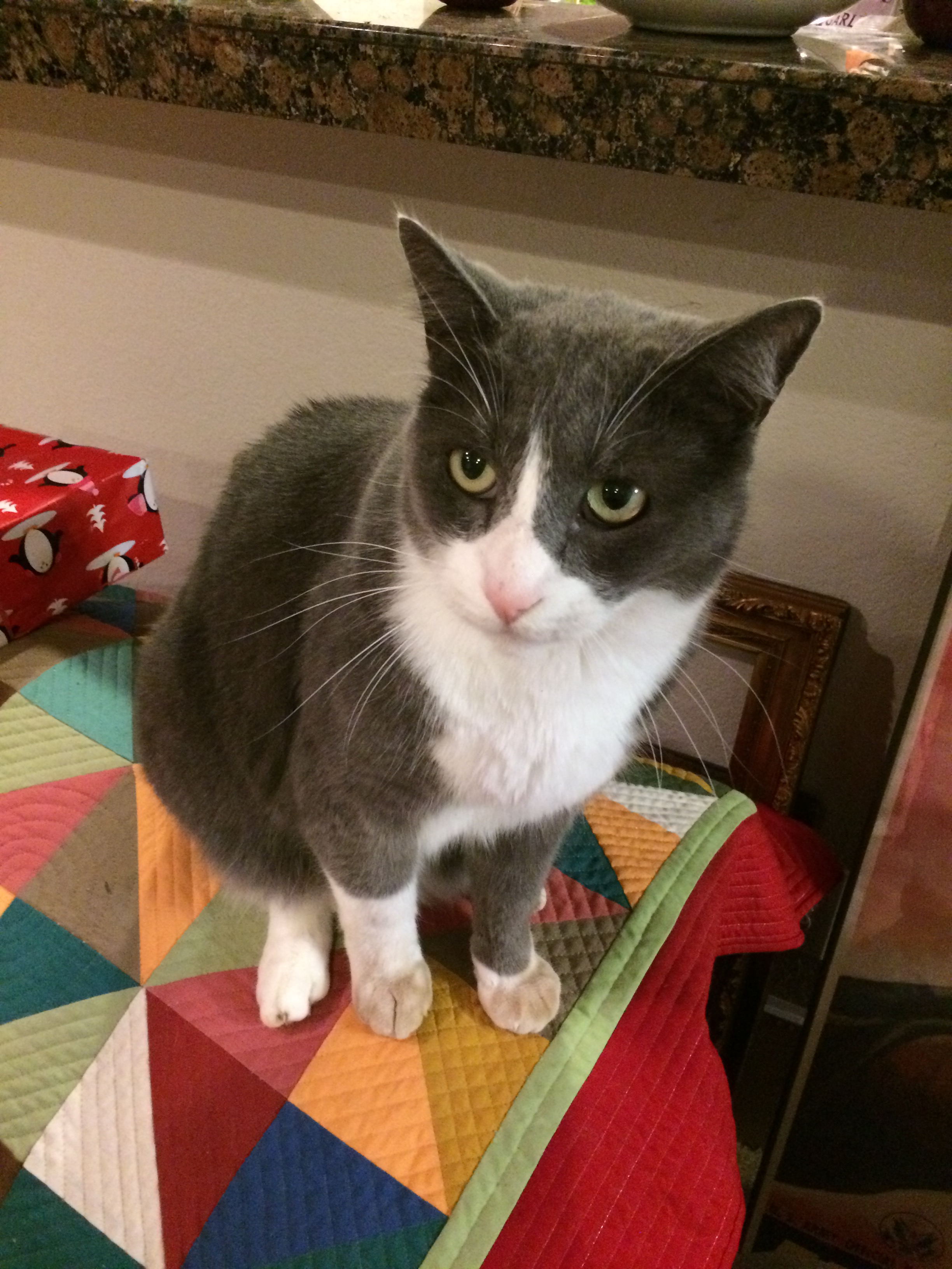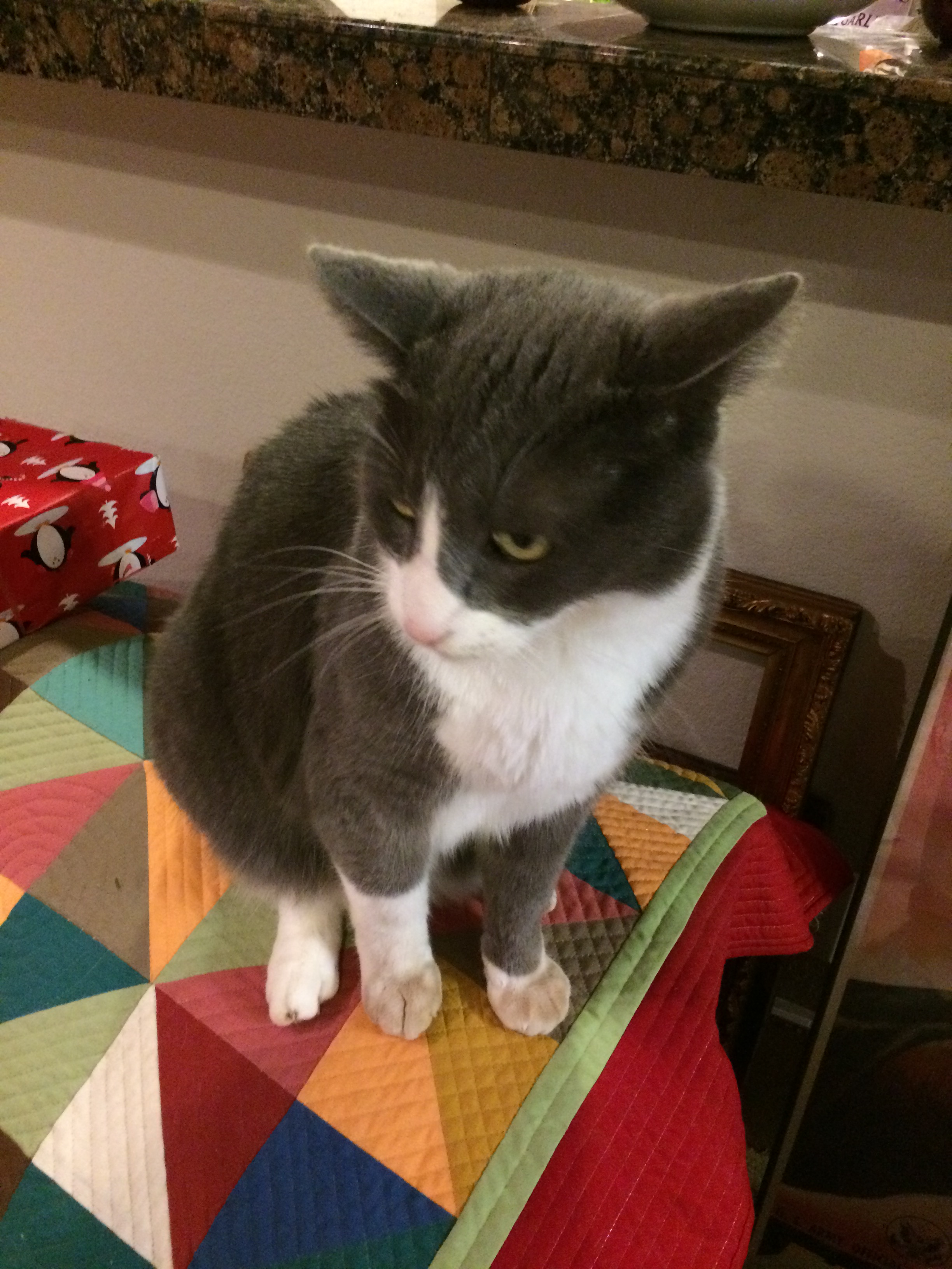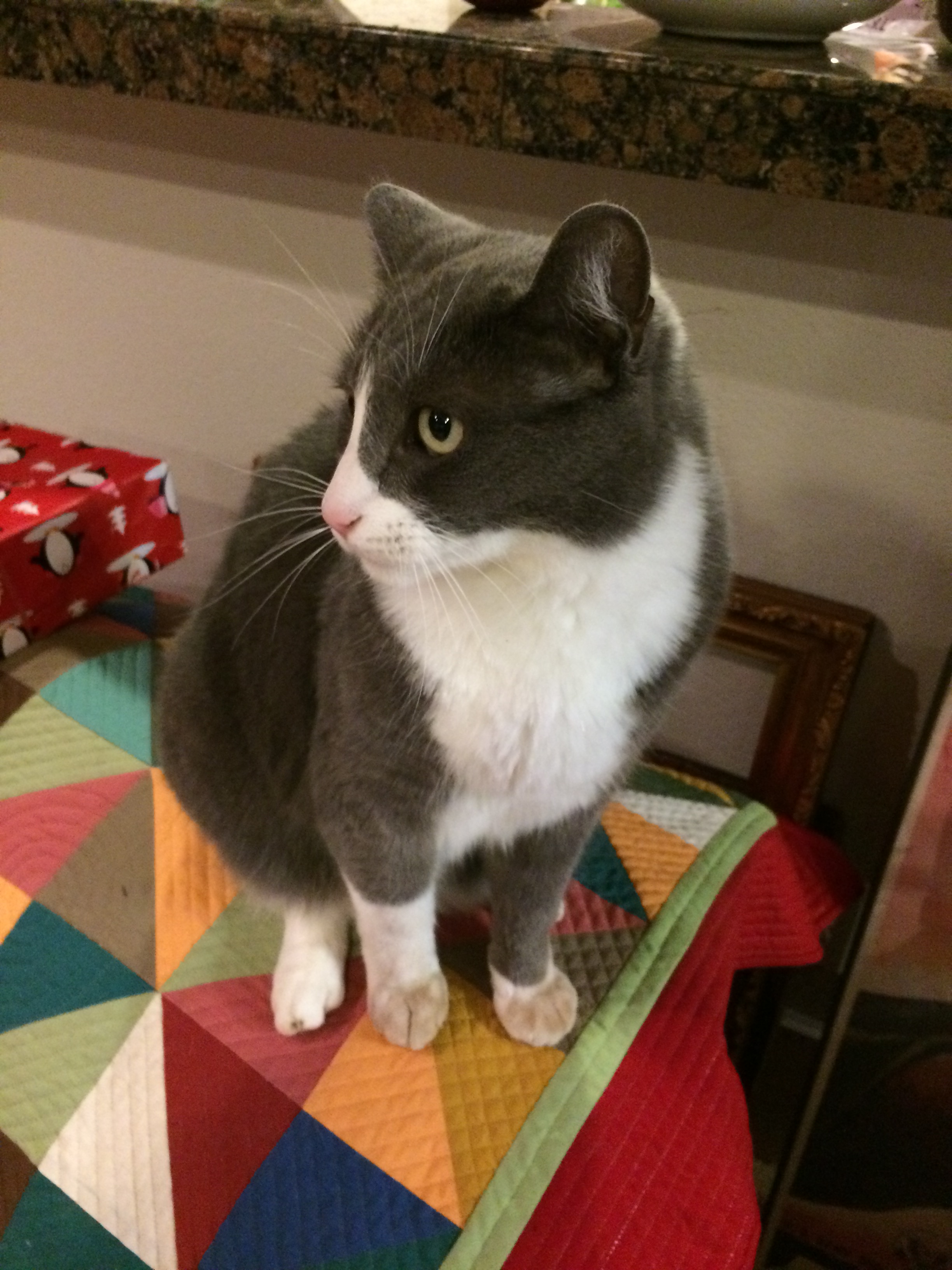 He is so soft too and such a sweet kitty. My husband told me he was going to adopt a gray kitten so I thought of Dorian, but Oscar seemed to fit him better. He also goes by Oski and “STOP IT.”