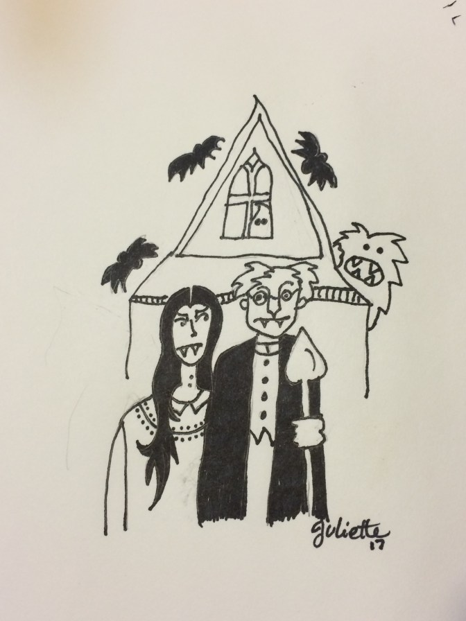 So in my rush to attempt to be clever and creative I took out a pen and pencil and did a quick sketch of “Vampire Gothic.” It took me all of five minutes. I believe Mr. Wood spent more time on the original version than I did on my sad Vampire version.