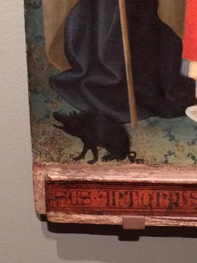 In a painting by Italian artist Bicci di Lorenzo (1373–1452) Anthony and Stephen are hanging out together with somebody else. Look in the far left bottom corner. What is that? Seriously what is THAT? Is is a dog? A pig? A demon? A lost animal of unknown origin?