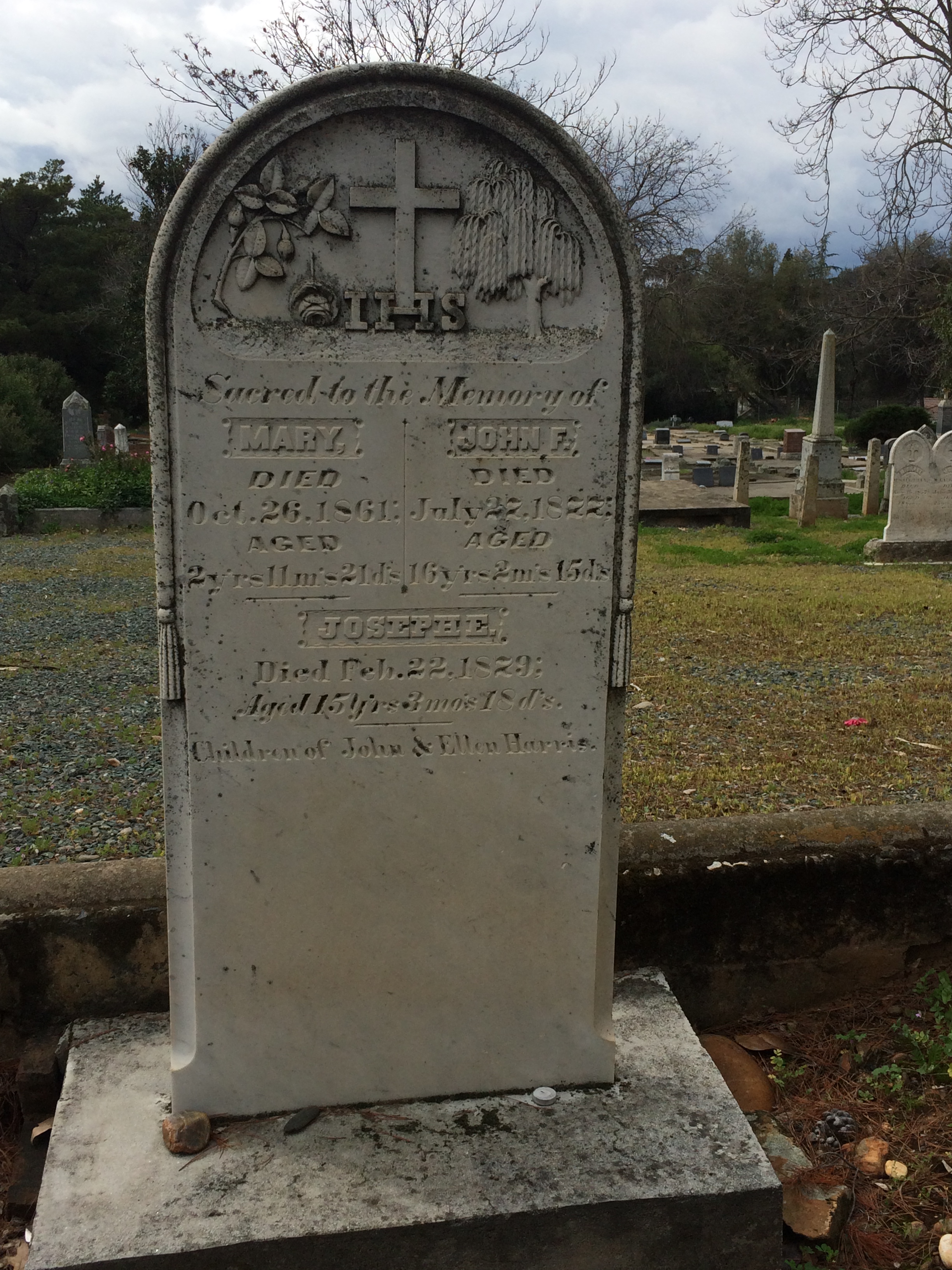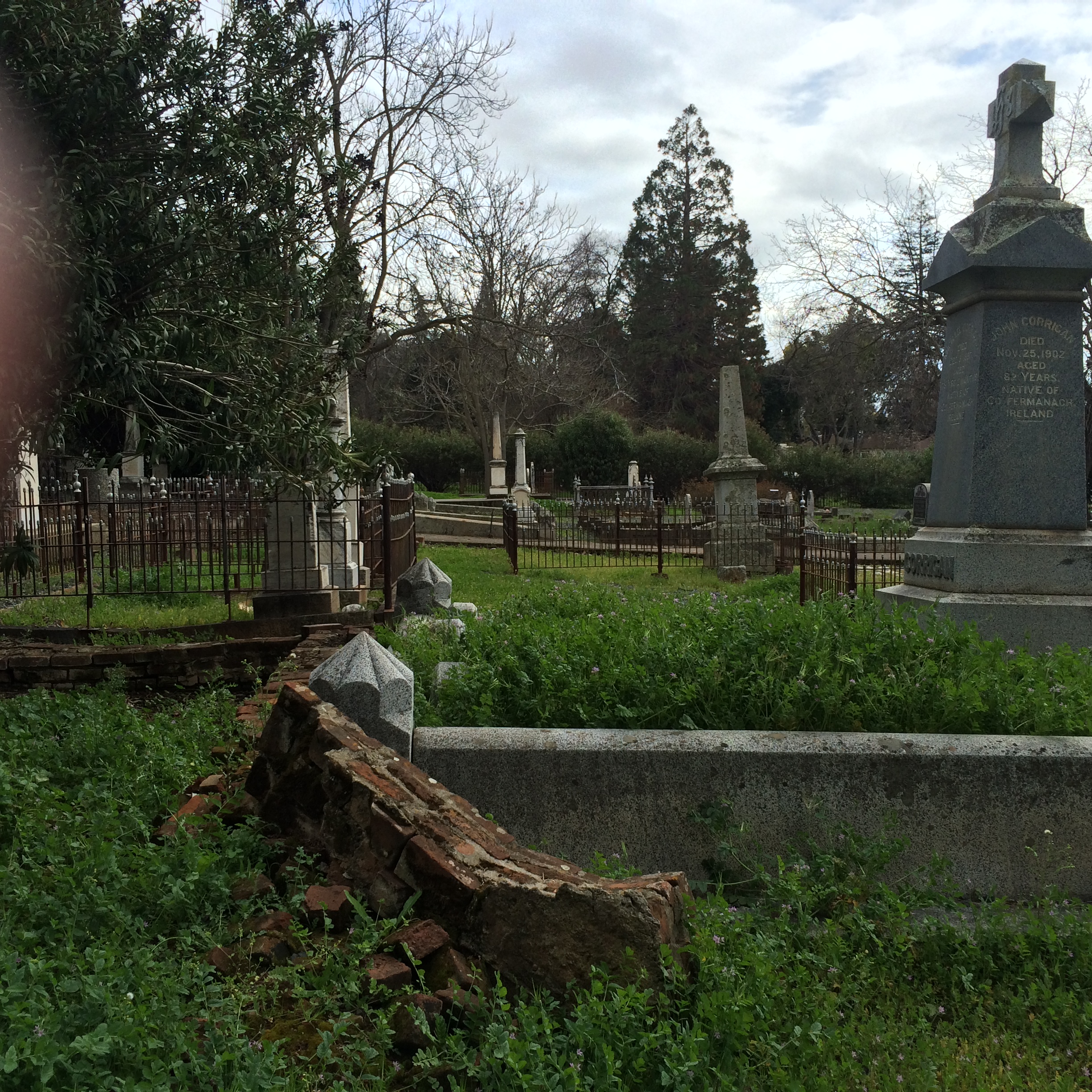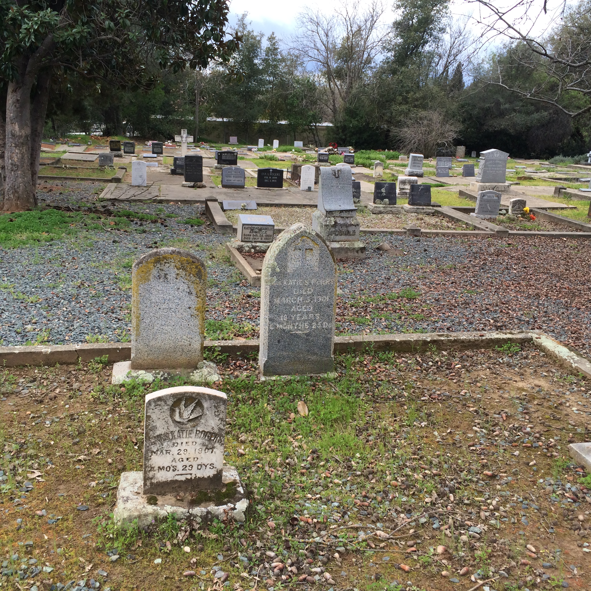 On the way home I decided to stop by the old St. John the Baptist Catholic cemetery (this is really an old-fashioned graveyard.) You’ll find no lavish crypts here. It is a small plot of about two or three acres and a small church founded in 1853. Yes, this was the Gold Rush Era in California. Irish emigrants came here to find their fortunes, make a better life and for many, die before their time. Unfortunately like many cemeteries of that time a high number of the graves are those of children and young people in their teens and twenties. Deaths at a young age were not unexpected, but that didn’t mean it wasn’t tragic or heartbreaking to their families and friends.
