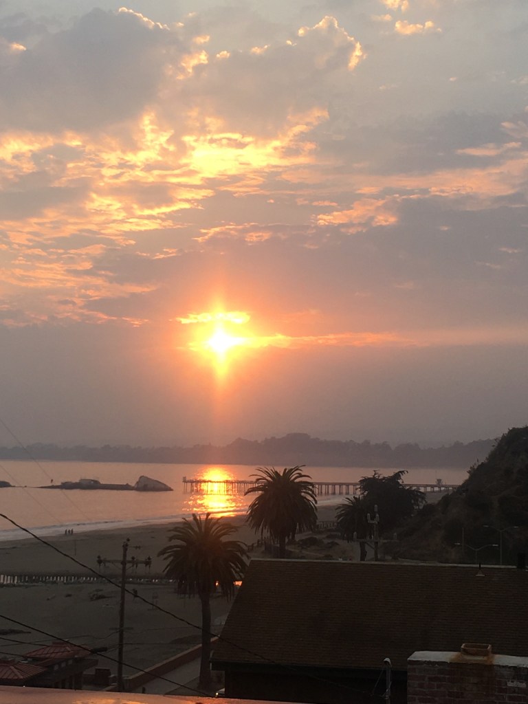 We just returned from five days in Aptos, California, on the edge of the Pacific Ocean. It was wonderful and cool. While fires burned around us we were safe. Now that we are home the sky is still hazy and it is hot as hell but we’re safe.