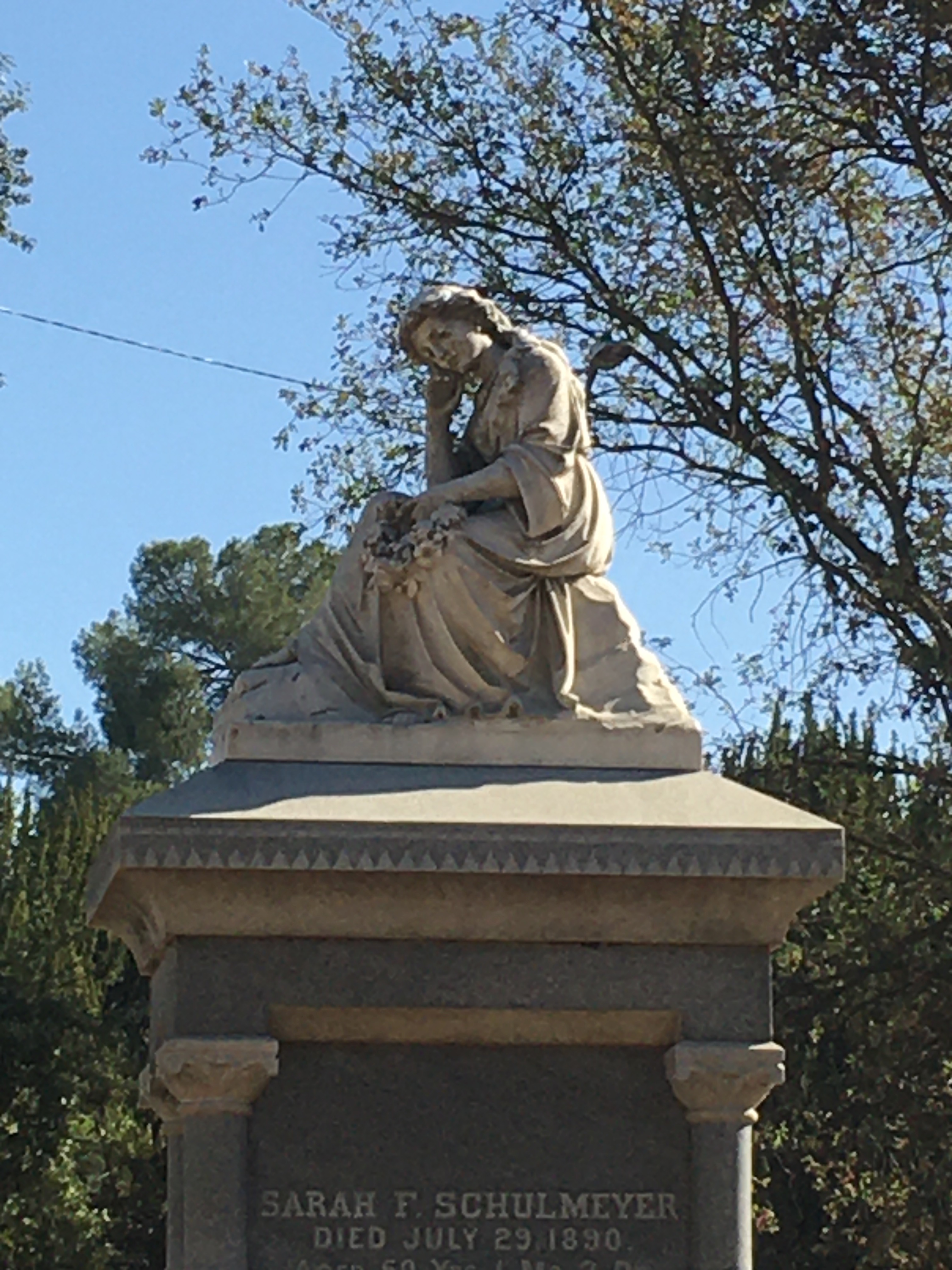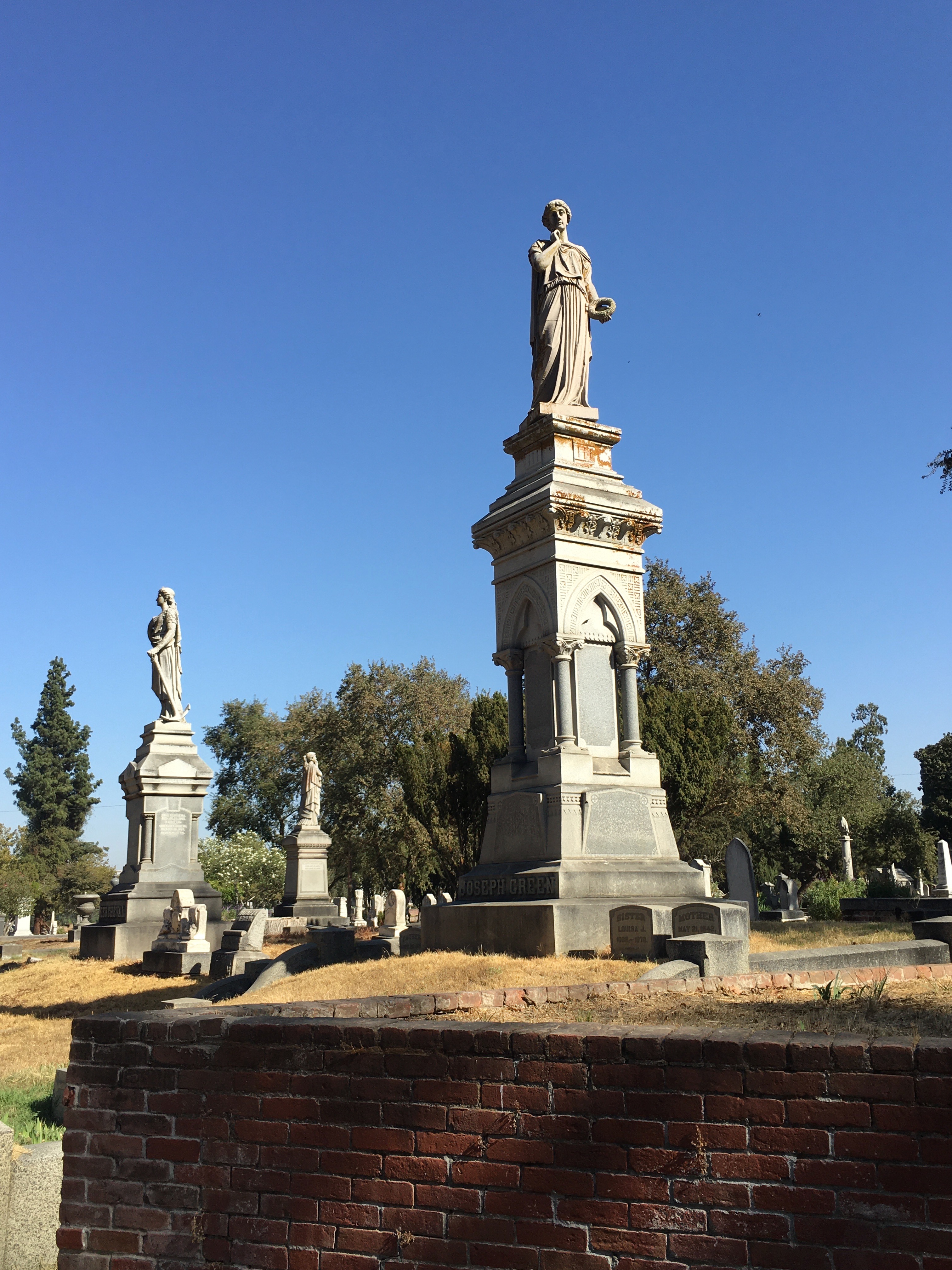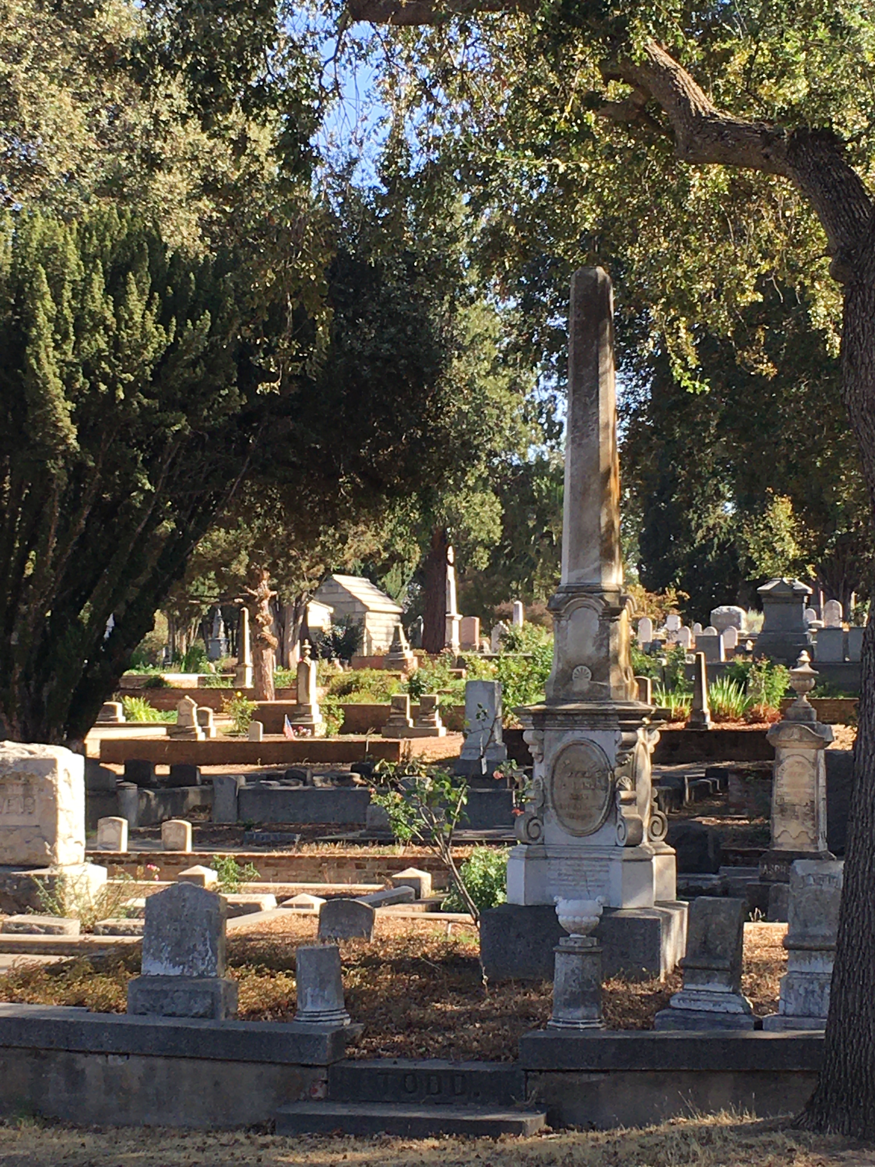 There is a quiet beauty about historic cemeteries that I can’t always put into words. So many lives ask to be remembered and stories beg to be told, or maybe not. Earlier this week (10/27/20) my daughter Clara and my friend Amelia joined me in a visit to the historic Sacramento Historic City Cemetery. We’ve had no rain so many of the usual flowers and grassy areas are dry and brown, but it does little to take away from the beauty of the place.