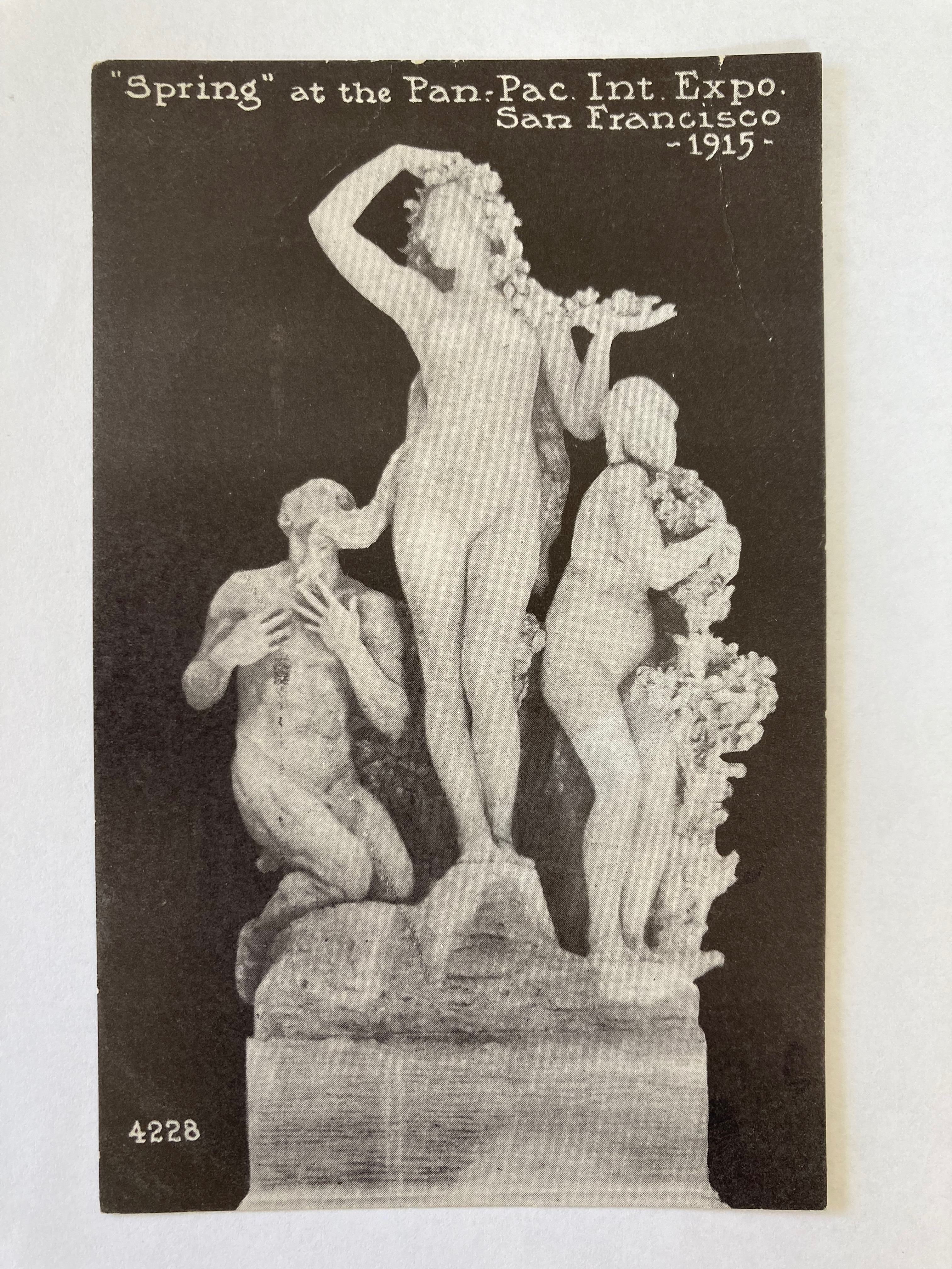This group of postcards shows off many of the artworks displayed, particularly sculpture. From the allegorical to the literal, all are beautiful and draw the viewer into another world of beauty, magic, and myth.