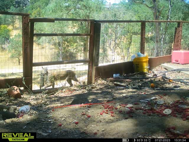 A few days ago a bobcat came by. I have no idea what it is carrying.
