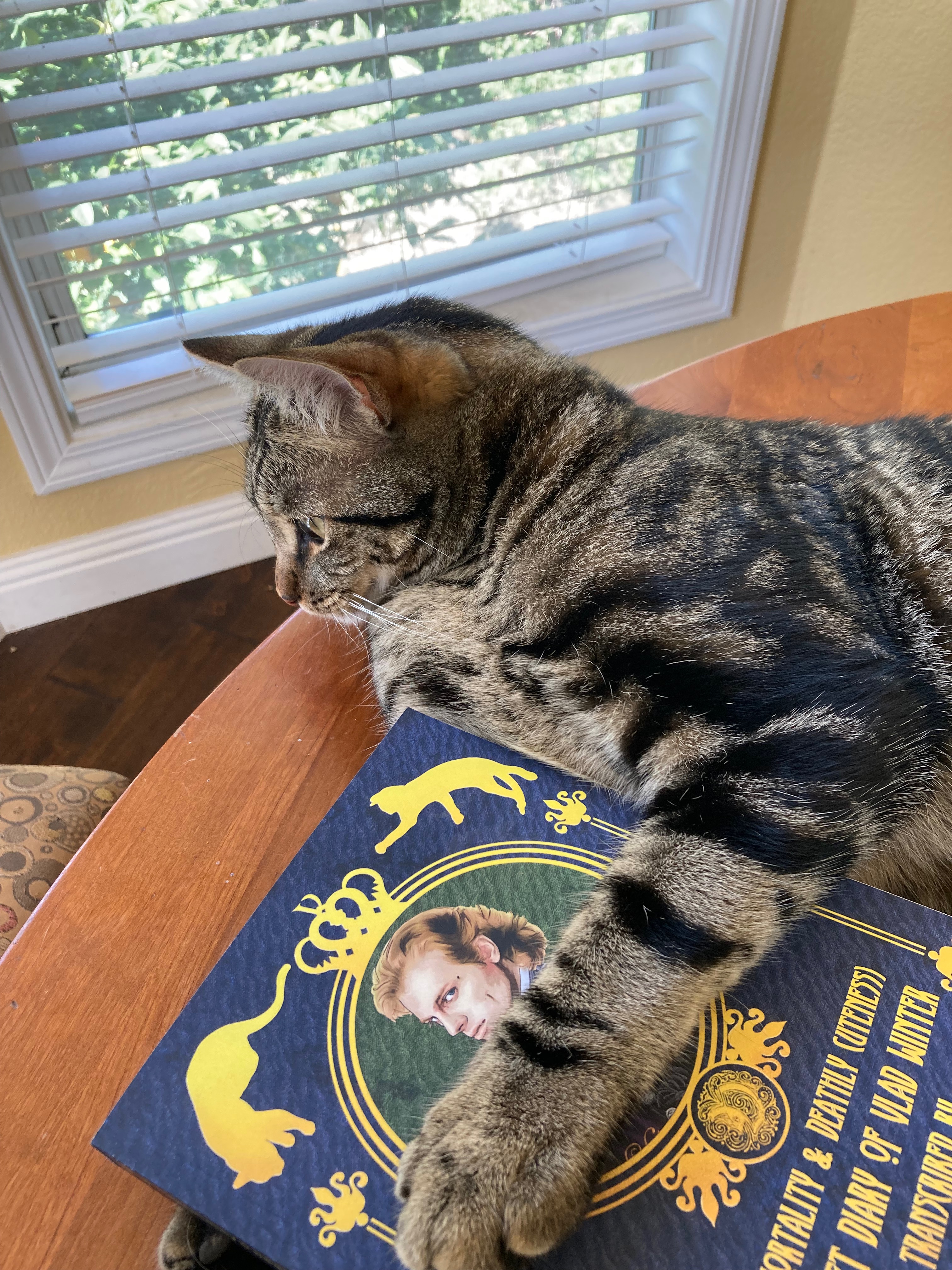 In honor of my kitten Sterling’s FIRST BIRTHDAY week, I’m giving away a book about a Vampire and his cats.