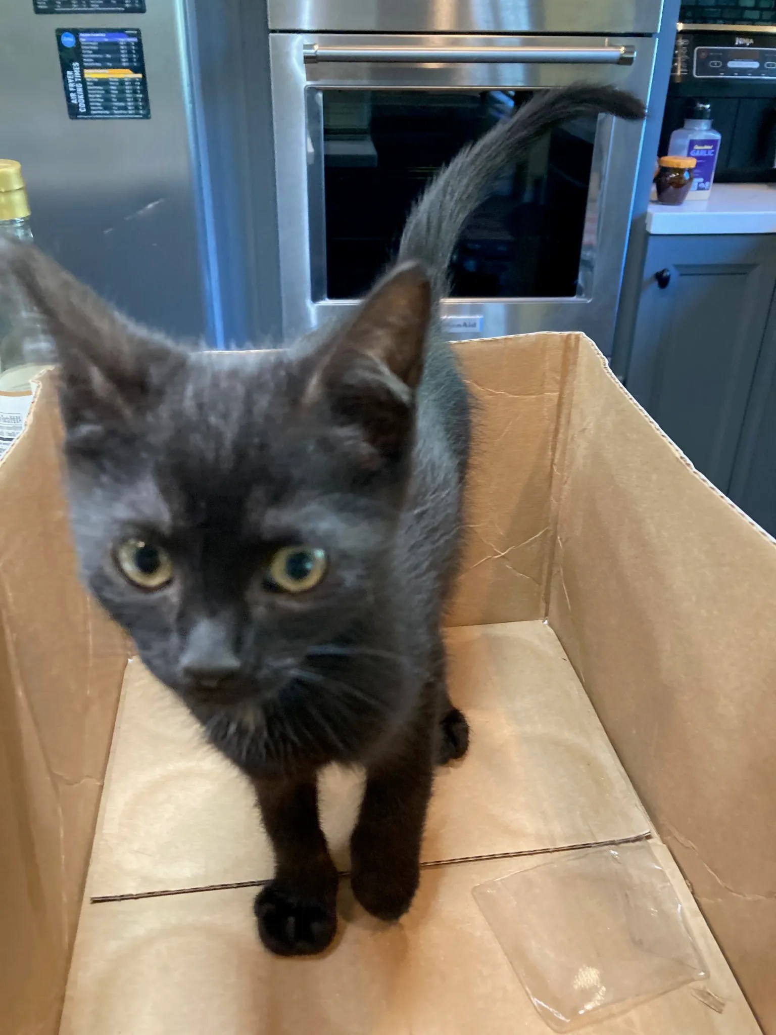 “You have Lucifer,” I said stroking the purring kitten under his chin.